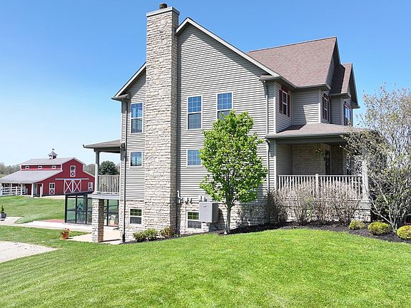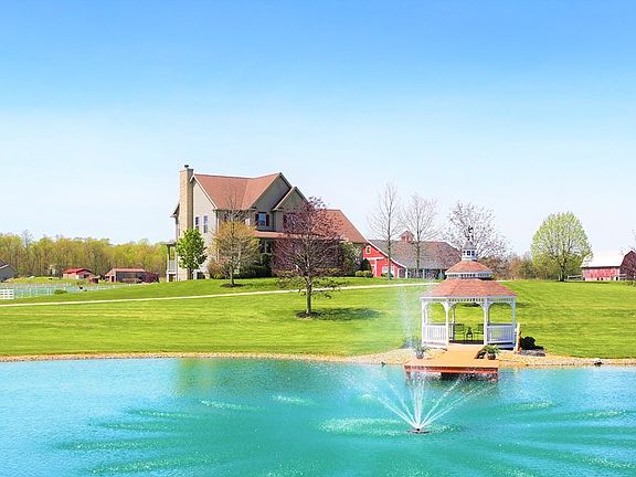 Stunning 10.6 acre entertainer's paradise in Lexington School District. This 5 bedroom, 5.5 bath attractively finished 3,934 sq ft home features two primary suites, an open living area with 18' ceiling, and cozy cinema experience. There is an attached 700 sq ft aquatic center with a retractable glass enclosure, heated floor, inground swim spa, hot tub, and sauna. Host events in a 2,000 sq ft rough sawn white oak barn with balcony seating. Great for weddings, concerts, or just having friends over for the big game. Alternatively use the separate pavilion with 60-person seating and a built-in grill, kitchenette, and restroom facilities. All will enjoy the swimming and fishing pond with fountain, gazebo, dock, and privacy trees. There are also equestrian facilities with a 4-stall horse barn with rustic upstairs apartment and extensive white vinyl fencing. All of this is only a 45 minute drive to Polaris.