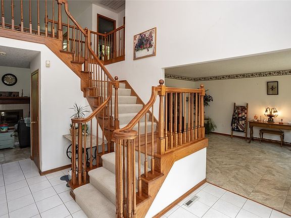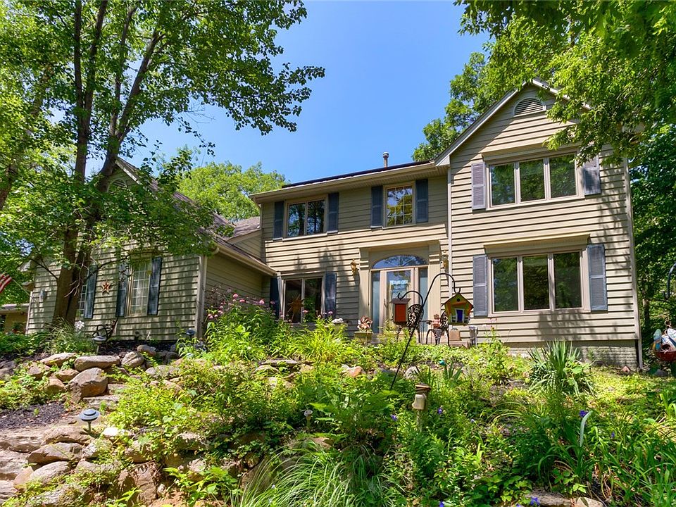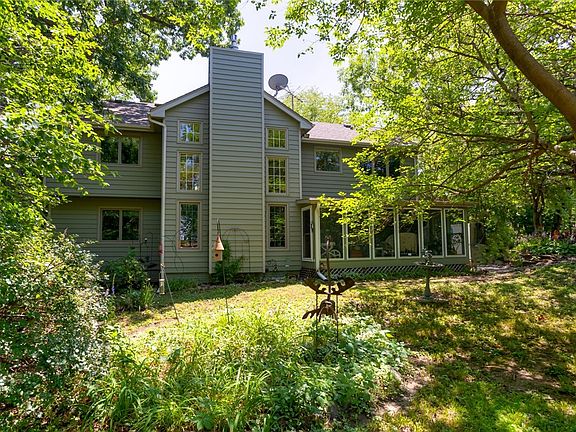 Custom built 2 story home on a secluded lot! This fantastic 4 bedroom home with 2,778/sqft of finished space is ready for you to make it your own. You're welcomed by a two story entry way with a front living room and formal dining space. Continue to the living room will tall ceilings and fantastic windows and an office off the living room. The kitchen and breakfast nook area are warm and inviting and lead to the 3 season area where you can enjoy the backyard and pond view. A half bath and laundry room complete the main level. Continue your tour up beautiful hardwood floors to the second level. French doors lead you to the primary suite with two large closets and ensuite bath with a jetted tub/shower and dual vanity. Three additional bedrooms and full bath complete the second floor. The lower level is partially finished and an oversized two car garage provide great storage space. Newer: roof and solar panels (paid in full), vinyl siding and several newer high efficient windows, hot water heater and furnace. Outside the beautifully landscaped yard and private backyard with pond view make this home truly picturesque. Schedule your tour today!