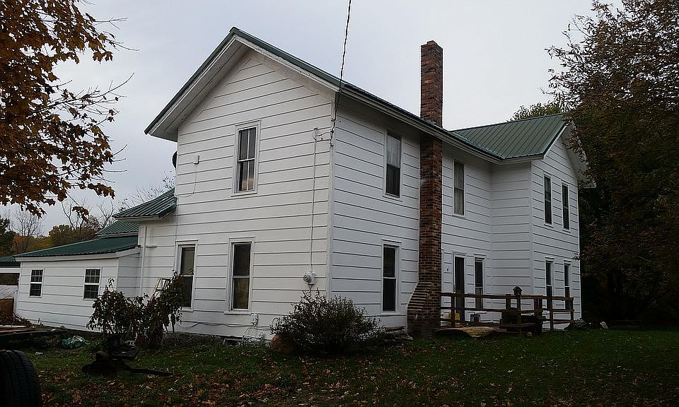 Traditional farmhouse with an attached 1-car garage, new roof in 2010, small barn reroofed 2011, another small barn added in 2015, summer kitchen added in 2019, entire house completely repainted outside, including replacement siding; much of downstairs repainted in 2019, bathroom remodeled in 2019. Natural hardwood floors & woodwork throughout! Scads of living and storage space, including 6 bedrooms, a big walk-in attic and a walk-in closet with a window that would make a nice 2nd bathroom, upstairs. It has a huge kitchen with tons of cabinets, 1st floor laundry, big freshly remodeled bathroom, closet & pantry space galore. Basement is accessible from inside & outside, nice & dry with a nice concrete floor, good sized root cellar, coal/wood bin, shelves and lots of room for freezers, storage, etc. with newer furnace, water heater, softener. Outbuildings include a 30x30 barn set up for pigs/goats/sheep; 40x60 bank barn w/ partial concrete floor, milking parlor, box stalls, (historic slatted barn for drying/storing hay, peg & beam with fieldstone foundation construction), 20x20 chicken coop with new roof. Property is rolling & surrounded by woods on 3 1/2 sides, approximately half wooded with a creek running through. It has many fenced pens, shelters & 2 bigger pastures for lots of livestock, trails around entire property and through the woods for ATV or horseback riding, or walking/hiking. There are oodles of domestic & wild fruits, nuts, herbs, mushrooms, etc. for the hungry human or wildlife forager, with excellent hunting. A self-sufficient-minded family's dream that's located on the edge of Lost Nation State Game Area, & around the corner from all-sports Bird Lake.