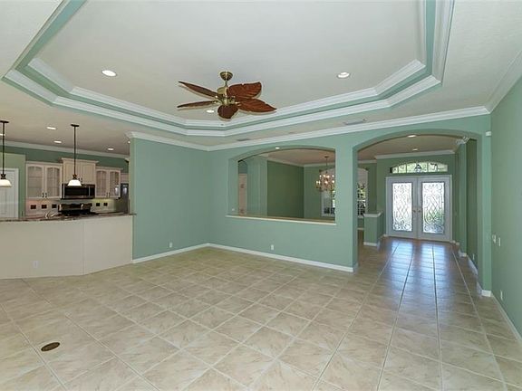 - Interior Features: Ceiling Fans(s), Eating Space In Kitchen, High Ceiling(s), Open Floorplan, Split Bedroom, Crown Molding, Solid Surface Counters, Window Treatments, In Wall Pest System, Tray Ceiling(s)
