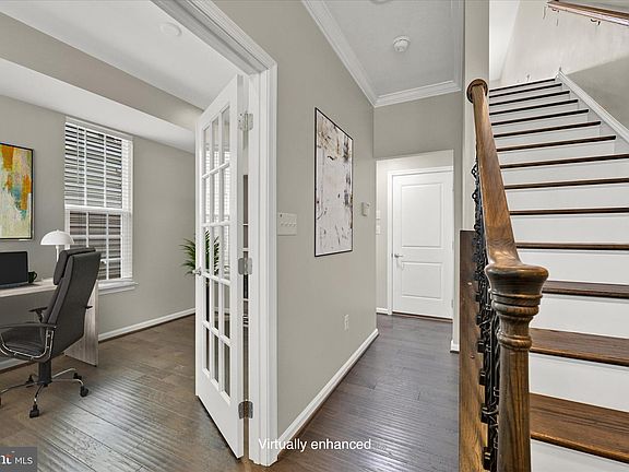 Welcome to your new home in Howard Square, Elkridge, Howard County, MD! This stunning end-unit townhome boasts a long list of luxurious upgrades and thoughtful touches that make it stand out. As you step inside, you’ll immediately notice the beautiful hardwood floors that flow throughout the home, creating a warm and inviting atmosphere. The office, adorned with elegant French doors, offers a bright and inspiring space to work or study. The open-concept living area is perfect for entertaining, featuring a built-in bluetooth enabled sound system that extends music enjoyment to the deck, the main level, and even the finished garage. The heart of the home is the gourmet kitchen, complete with a stunning marble backsplash, granite countertops, and an upgraded appliance package including double ovens. Under-cabinet lighting enhances the space, making meal preparation a joy. Upstairs, you’ll find two spacious bedrooms, each with its own bathroom. The master suite is a true retreat, featuring a divine shower with floor-to-ceiling tile and double shower heads for a spa-like experience. This home is not only beautiful but also practical, with a built-in humidifier in the HVAC system (serviced in 2023), ensuring comfort year-round. The home is pre-wired, and carpets will be professionally cleaned before settlement. The LG stackable washer and dryer is only one year old. The home painted top to bottom in June 2024, offering you a fresh and carefree move in! A new privacy wall was also installed at the deck. Beyond the home, Howard Square offers a vibrant community with plenty of local attractions. Enjoy easy access to major highways, making commutes to Baltimore and Washington, D.C., a breeze. Nearby, you’ll find the scenic Patapsco Valley State Park, perfect for outdoor adventures and picnics. There's no shortage of places to shop and dine in this area. The location does not disappoint. Don’t miss the opportunity to make this exceptional home your own. Schedule a tour today and experience all that Howard Square and Elkridge have to offer!