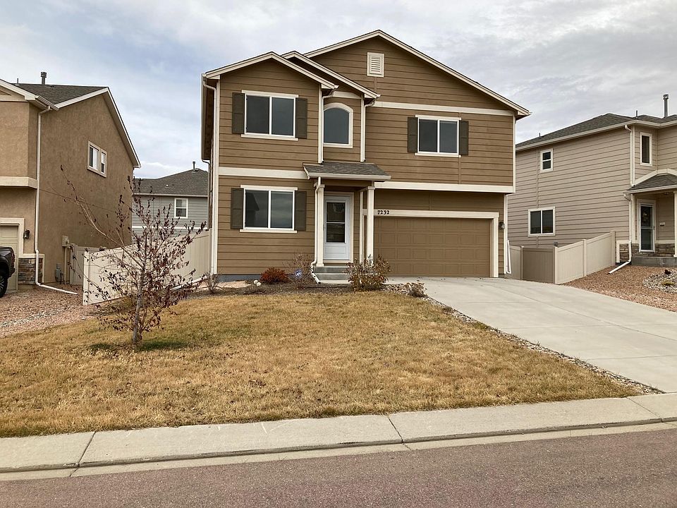SPACIOUS AND WELL CARED FOR HOME IN GREAT LOCATION. Close to entertainment & shopping on the Powers Corridor. Falcon D49 School District. This BEAUTIFUL home offers 3 bedrooms, 3 bathrooms and 2 car garage. First floor features Front Room that can be used as office or sitting area; Kitchen upgrades include GRANITE COUNTERTOPS, STAINLESS STEEL APPLIANCES and ISLAND. Family Room with GAS FIREPLACE flows together with kitchen and dinning area. Deck to fully fenced backyard with Mountain Views, located right off the kitchen. All 3 bedrooms, 2 full bathrooms , oversized loft and laundry room are located on the second floor. MASTER SUITE offers 5 piece bathroom and WALK IN CLOSET. Both secondary bedrooms have walk in closets as well. Come see this beautiful home for yourself. ~WASHER & DRYER ~ BLINDS ~AC ~ 924 square foot unfinished basement offers plenty of storage. Tenant responsible for all utilities and maintaining the lawn. 12 months lease minimum. Mature dogs allowed with $250 non-refundable pet fee. No aggressive breeds. No young puppies. Renters Insurance requited.