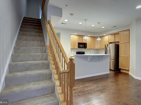 **MULTIPLE OFFERS RECEIVED** OFFER DEADLINE MONDAY 2PM (NOVEMBER 20TH). Welcome to this stunning home that offers the perfect blend of space, style, and modern living. As you enter, you'll immediately notice the 5-inch engineered hardwood floors, installed in 2015, that flow throughout the main level, creating a warm and inviting atmosphere. The bay window in the front floods the formal living room with natural light, making it the perfect spot to relax and unwind. The upgraded kitchen is a chef's dream, boasting 42-inch cabinets that offer plenty of storage space, a large 2-tier island with a breakfast bar, and beautiful quartz countertops (November 2023). The kitchen has been thoughtfully designed and includes updated appliances, including a microwave (2023), refrigerator (2023), and oven (2022). Upstairs, you'll find the primary bedroom, a true retreat with two walk-in closets, a tray ceiling, and a private bathroom. Updated blinds in the bedrooms replaced 2023, The second bedroom and third bedroom with closet and plenty of space are adjacent the second full bathroom. Parking is a breeze with a garage and parking pad out back of the unit, providing guaranteed parking spots. Additionally, there is ample first-come, first-serve parking out front on Elkridge Crossing Way, ensuring your guests always have a place to park. Minutes from all major highways, grocery stores, shops and Guinness brewery. The perfect spot to call home is waiting! Make it yours today!