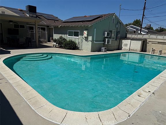 JUST reduce Price 50K. This stunning and private Van Nuys pool home is situated on a prime corner lot with exceptional curb appeal. The main home offers 3 bedrooms and 2 bathrooms, plus a 1-bedroom, 1-bathroom ADU of approximately 500 sq. ft. Perfect as a guest suite, pool house. Step inside to a welcoming foyer with tile floors that opens to the formal living room, featuring wood flooring, crown and base moldings, expansive windows, and a double-sided brick fireplace shared with the family room. The spacious family room is ideal for entertaining, complete with open-beamed ceilings, wood paneling, a large fireplace with mantle, dining area, tile floors, and brand-new dual-pane sliding doors that lead to the backyard oasis. The kitchen provides abundant counter space and includes a built-in stove, cooktop, microwave, dishwasher, and a peninsula for additional seating. The primary suite enjoys a private bathroom with dual vanities, a walk-in shower, pocket door, and separate toilet area. Conveniently located in the hallway is a stackable washer and dryer. The permitted ADU offers its own entrance, tile flooring throughout, a split-unit AC system, granite countertops with a microwave, attic storage, and a bathroom with walk-in shower. The backyard is designed for California living — featuring a sparkling pool with a new pump, spacious patio, and a custom brick firepit with built-in seating. Recent upgrades include: partially remodeled kitchen with new quartz countertops, new solar panels, dual-pane windows and sliding doors, newer roof, copper plumbing, new central AC with updated ducts, and a tankless water heater replaced just last year. Centrally located within walking distance to restaurants, shops, and public transportation, with quick freeway access to the studios and everything the Valley has to offer. This home truly checks every box! Call me before is gone!!