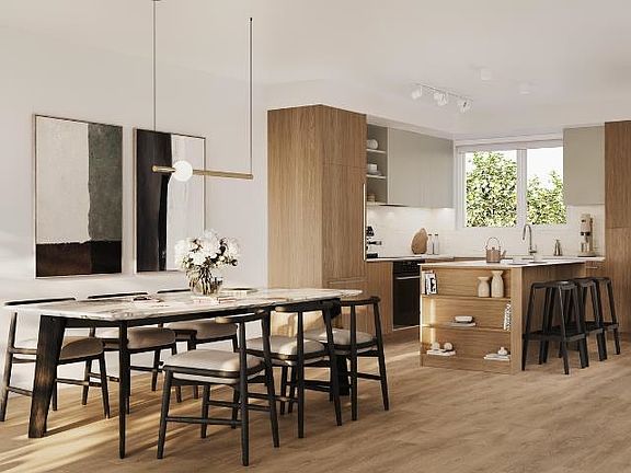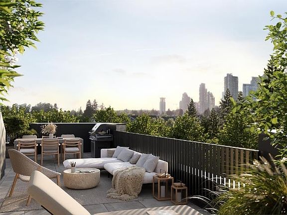Welcome to Koen by Beedie Living. This spacious 3-bedroom, 2.5-bath townhome at Koen offers over 1,400 sf of home space. Enjoy a large private rooftop patio spanning more than 500 sf, perfect for outdoor entertaining. The open kitchen, living and dining area is ideal for everyday living, featuring a kitchen island with open shelving detail and Porter & Charles appliance package. The primary bedroom includes a double vanity ensuite, and separated bedrooms add privacy throughout the home. Residents can enjoy access to premium amenities including an entertainment lounge, outdoor lounge with BBQ and fire table, interactive children's play area, fitness centre and more. At Koen, live just minutes from Metropolis at Metrotown, Station Square, and Royal Oak SkyTrain Station.