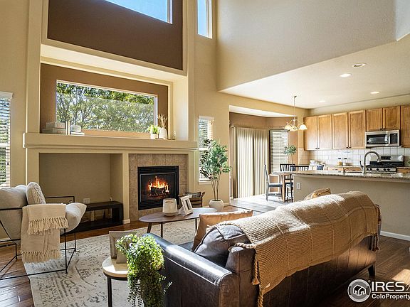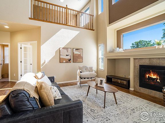 Beautiful home with full finished walk-out basement backing to greenbelt/open space. This home features 5 bed, 4 bath with main floor study/office, second floor loft, formal living and dining rooms, gorgeous hickory hardwood floors, newly upgraded kitchen cabinets, granite countertops, and stainless steel appliances. The main floor living room features a gas fireplace, vaulted ceilings, and picture windows. The door off of the kitchen leads you to a large Trex deck overlooking the open space behind the home. The second floor features an open loft area that leads to the primary bedroom with a 5 piece bath, walk-in closet, and three sizable additional bedrooms plus a full bathroom.The finished walk-out basement features a large rec room and a private bedroom with a 3/4 bath plus unfinished storage space. The walk-out leads you to a covered patio, chicken coop, storage shed, and a nice fenced yard with a sprinkler system and access to the greenbelt that abuts the property. Neighborhood includes a community pool, tennis courts, and playground. This south Fort Collins home will not disappoint. Come take a look!