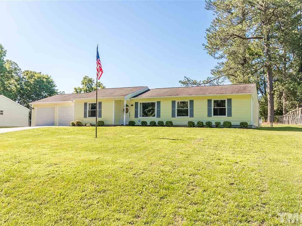 Updated ranch on large .49 acre fenced lot, only a 5 min drive to Triangle Town Center with no city taxes or HOA dues! This home has been lovingly cared for by the original owners and includes many updates. Upgraded kitchen features granite, new cabinets & soft-close doors and drawers. Beautiful new carpet, life-time warranty Champion windows and leaf filters were all installed for comfort and easy maintenance. This split floor plan features 4 bedrooms & an office. HUGE, oversized garage for your hobbies!