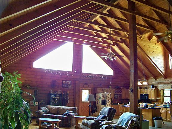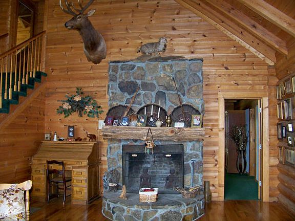 Enjoy this 42+ Acre fully fenced Beautiful Log Cabin to call home! Fish in your own pond. Great open floor plan with a stone fireplace in the living room, french doors leading to a wrap around porch. Spacious master bedroom with a romantic fireplace & large master bathroom on the main floor.Full basement with garage door entry;park 2+cars.Barn & tack rm. Roof approx 8 yrs new,heat pump 3 yrs new.