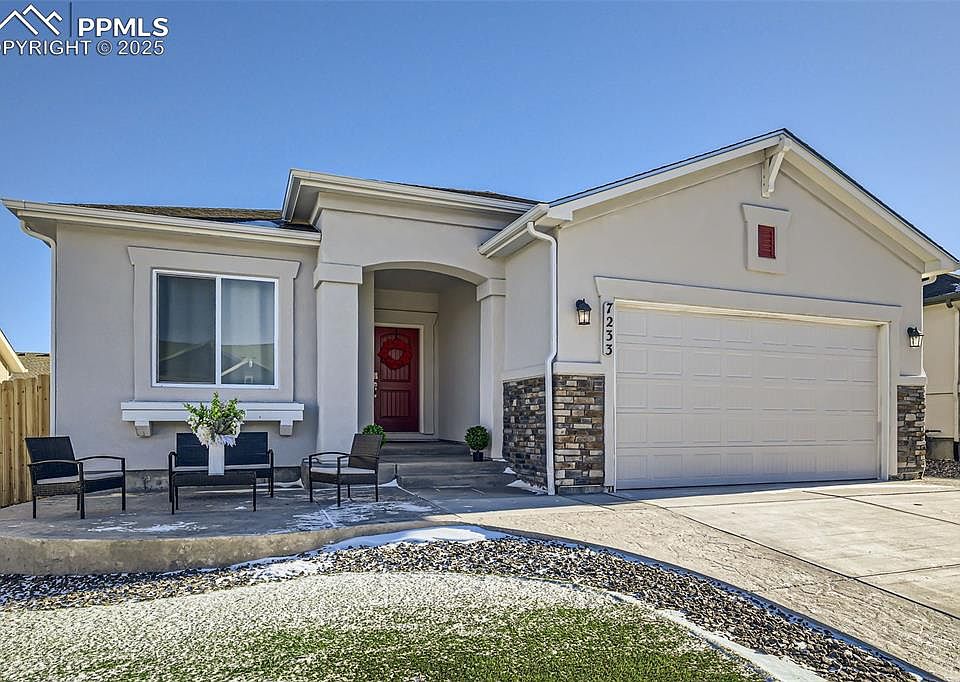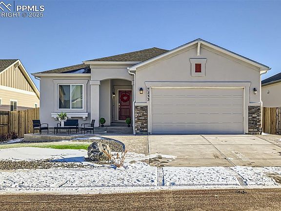 Welcome Home! Enjoy the thoughtful upgrades this single-owner home offers. Purchased directly from the builder. This stunning ranch-style home features a finished basement and low-maintenance landscaping, making it the perfect blend of comfort and convenience. Enjoy peace of mind with a brand-new roof (2024), new fencing, and solar panels (owned) to save on utility costs! The primary suite is a true retreat, offering an adjoining bathroom with a large shower, dual vanity, and walk-in closet. The main level also includes a secondary bedroom, a full bathroom, and an oversized laundry room for easy day-to-day functionality. Both the front and back yards are designed for low maintenance, with oversized patios giving you more time to relax or explore the many beautiful places Colorado Springs has to offer. If you love grilling, you’ll be thrilled with the backyard’s natural gas hookup—say goodbye to propane tank hassles forever! Hot tub hookup available in the backyard as well. The professionally finished basement boasts high ceilings, two spacious bedrooms with walk-in closets, and a versatile great room with a coffee bar, The possibilities are endless! Whether you dream of a second living area, an entertainment space, a home theater, or a recreation zone, this space is ready to bring your vision to life. This home has it all—and more. You’re going to love it here. Welcome to your new home!