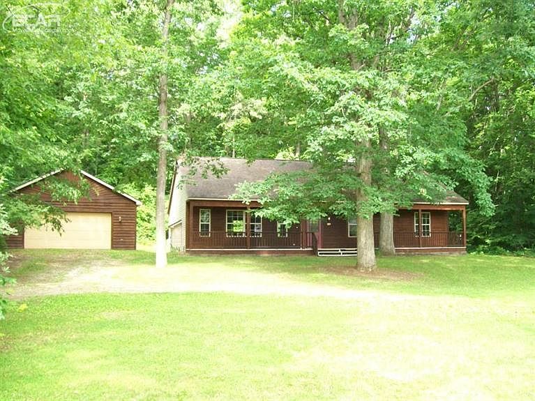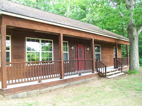 Beautiful ranch home with country porch and wooded setting. Enter the home into a spacious great room, complete with gas fireplace. Kitchen is detailed with solid oak cabinets and natural stone backsplash. Appliances include built in microwave and dishwasher. 3 bedrooms, 2 baths, separate dining and laundry rooms.