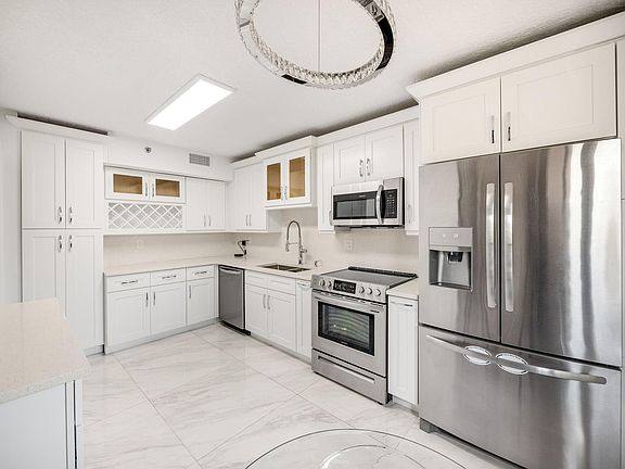 ACCEPTING BACK UP OFFERS Stunning condo in Boca Pointe! was completely renovated (2020) with over $125k in upgrades showcasing top-notch workmanship and premium materials. The kitchen is a standout feature, boasting custom cabinets, accent lighting, quartz countertops, and stainless-steel appliances. The home also includes luxurious touches such as stunning 33''x33'' porcelain tile floors, a spacious layout, and 2 private balconies with stunning views of the golf course. The master bedroom is generously sized and includes a beautifully renovated ensuite bathroom & walk-in closet (2023) with a soaking tub and glass shower. For added convenience, there is a washer/dryer in the unit, covered parking, and a range of luxurious amenities. Don't blink or you will miss out on this! Club membership is optional with a variety of choices for golf, social and seasonal members. Best kept secret in Boca!