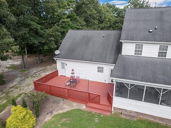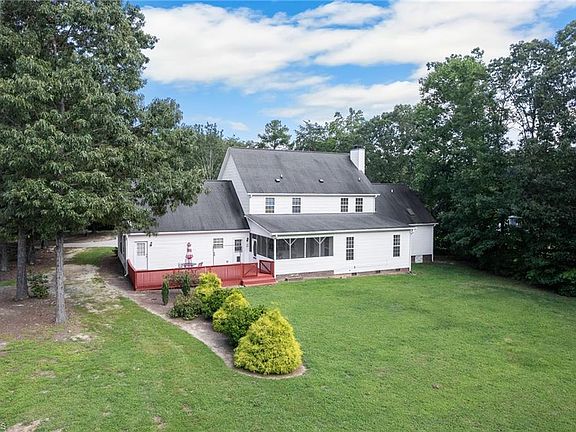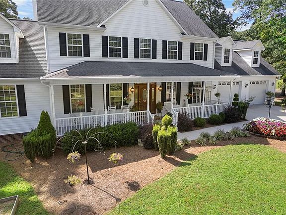 BACK ON MARKET!!! NEW ROOF AUG 2024!!! Nestled off the main road this spacious 4300+ sq ft home sits on 4.44 -/+ acres, offering 4 spacious bedrooms, 3 full baths, and 2 half baths, ensuring comfort for all. Two versatile bonus rooms can be tailored to your needs, whether as a playroom or possible guest suite.The main level primary bedroom is conveniently adjacent to an office, ideal for working from home. Primary bedroom options on both levels. The well-appointed eat-in kitchen features a breakfast bar, built-in desk, pantry, and ample cabinet and counter space. The home features a large great room with a stone fireplace, a sunroom/den with gas logs, a screened-in covered patio, a covered front porch, and a deck perfect for outdoor entertaining. Storage with large walk-in closets throughout, a 24x30 2-car attached garage with a storage area, and a 32x24 detached garage perfect for a workshop/storage!