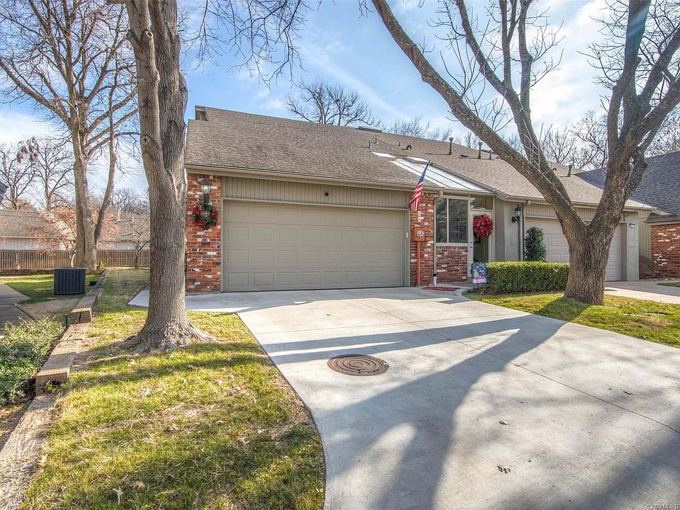 This lovely patio home in Pebble Creek is situated in a private setting just outside of the Tulsa action. First floor master, two secondary bedrms upstairs, each with their own private ensuite, perfect for hosting. Secondary bedrms have tilt-in windows (new 2012) 9 large walk-in closets throughout offer plenty of storage. Kitchen has granite & newer S/S appliances. Rheem hot water tank installed in 2018. Mature trees for privacy & a recently installed Leaf Guard guttering system (transferable warranty)