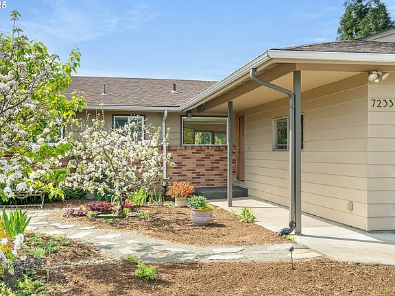 Tucked away on a quiet cul-de-sac in Hillsdale’s desirable Wilson Park, this beautifully updated mid-century daylight ranch offers timeless original details and modern comfort. Set on a sunny, west-facing lot with sweeping views, it’s a true gardener’s paradise. Inside, a calming wall of windows floods the space with natural light framed by classic MCM design. At the heart of the main level, a striking double wood-burning fireplace creates centerpiece for the open floor plan, offering distinct yet connected living spaces. The chef’s kitchen features updated cabinetry that complements the original trim and hardwoods, providing beauty with functionality. A recent addition brings a rare spacious primary suite to the main level, complete with a private porch and heated bathroom floors. The expansive lower level includes a large family room, full bathroom, bedroom, and multiple storage areas—ideal for hosting game day gatherings or as a separate living quarters. Major system upgrades include new plumbing, an updated electrical panel, tankless water heater, earthquake retrofitting, and newer windows throughout. Don’t miss the large additional storage accessed from the backyard! The mature garden has been thoughtfully planted and cared for with year-round delights. A+ location in a quiet neighborhood blocks from downtown Hillsdale, Rieke & Wells schools, and easy access to I5 and Barbur! [Home Energy Score = 8. HES Report at https://rpt.greenbuildingregistry.com/hes/OR10237567]
