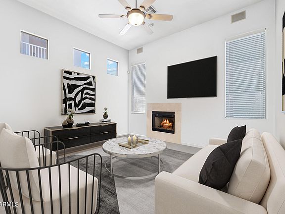 Step into your North Scottsdale haven at Sterling Place, where tranquility meets luxury. Don't lift a finger! Almost all the high-end custom Furniture/Art and accessories are available. Make this the ultimate lock and leave home! This single-level gem boasts four bedrooms, three-and-a-half baths, and a beautifully designed split floor plan on a peaceful cul-de-sac. As you enter, you're greeted by a graceful foyer, leading to spacious living and dining areas under lofty 12-foot ceilings that bathe the interior in natural light. Entertaining is a breeze with six strategically placed speakers setting the stage for unforgettable gatherings. Plus, an attached casita with a private entry welcomes your guests. Say goodbye to front yard maintenance worries, thanks to the diligent HOA. Outside, your backyard oasis awaits, featuring a water fountain, a firepit, and an in-ground spa, seamlessly blending relaxation and entertainment.