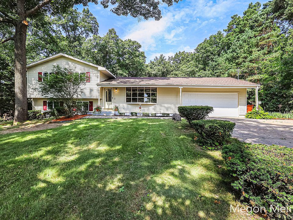 Welcome to 7234 Kay Drive. You are going to fall in love with this quad level 4 bedroom, 2 bath home located just west of Greenville that sits on 1.25 acres. This home has so much to offer including a cozy living room, beautiful kitchen with dinning area, appliances included, large bonus/family room over looking the back yard with a wood stove, spacious primary bedroom with a slider opening to a balcony, full basement/gym area, plenty of storage, 2 stall attached garage, in-ground 8ft deep pool ready for your end of summer party, pool shed and a cement basketball court! Call today for your private tour!