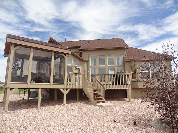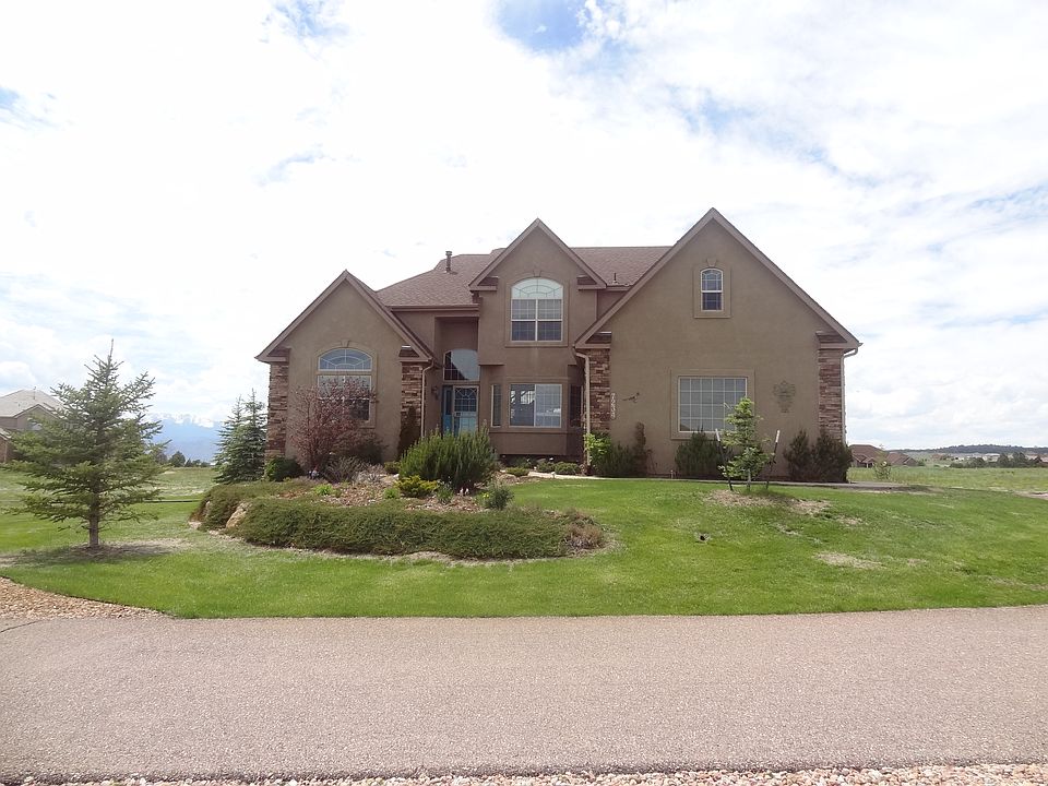 This home sits on 2 1/2 acres and has perfect views of the mountains. Located only 5 minutes from Woodmen and Powers. On the main level this home has a dining room, living room, family room, kitchen, laundry room, powder room and main level master with bathroom (with heated floors). Upstairs you will find 2 bedrooms sharing a jack and jill bathroom and another bedroom with it's own bathroom. There is also a secret bonus room. Every bedroom upstairs has a walk in closet. The basement is finished with 2 bedrooms, a bathroom and a big game room with bar and living room. There is a 3 car attached garage. The home has air conditioning, 2 furnaces and 2 water heater, plus a water treatment system. The inside of the house has been repainted as of December 2015. On the outside there is a brand new sunroom!