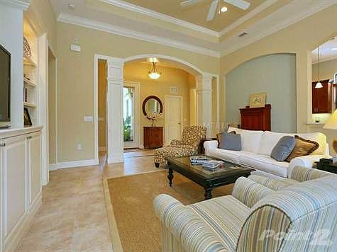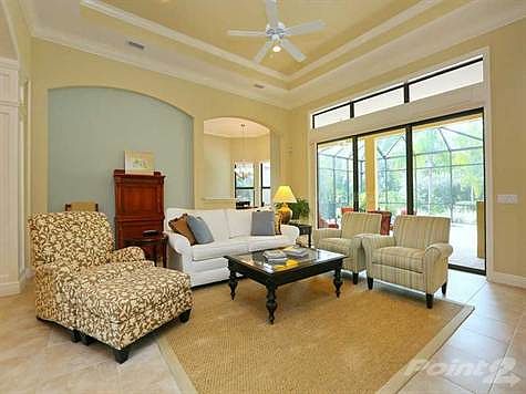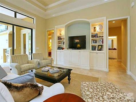 This home is a gem! The popular Aviano great room plan by Neal Communities boasts architectural details from start to finish. Lush landscaping creates attractive curb appeal then you are met with french door w/side light to foyer w/designer columns, expansive great room w/coffer ceiling, crown molding, & masterfully crafted built-in. A separate dining room w/built in buffet is perfectly located adjacent to the kitchen of your dreams featuring an abundance of cherry wood cabinetry w/glass doors, ss appliances, built-in microwave, center island w/granite, wine frig, under counter lighting, subway backsplash, & breakfast area w/bay-like windows for a bright, cheery kitchen. Great room offers pocket sliders to gorgeous pool w/water feature, outdoor kitchen, & paver deck, just perfect for entertaining. Den offers double entry french doors w/wood floors, crown molding, & recessed lighting. The Master suite is generous w/double french doors to pool, coffer ceiling, suited walk-in closets, & a bath w/cherry wood cabinetry w/drawers, solid surface counters, tiled tub deck, bronze faucets and much more. Other features include tile details in guest bath, decorator niches, 5 l/4 baseboards, laundry sink w/hanging rod, alarm system, pull down attic stairs, painted garage floor w/windows in garage door, and above all Impact Glass Windows all around the home. Exquisite light fixtures and fans throughout. Homes like this rarely come on the market, hurry before it's too late!