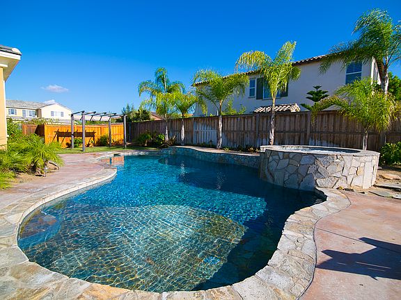This Santee stunner is located in the exclusive Sky Ranch community, in it's premier Eagle Pointe development. What makes this luxury home extra special is the panoramic views all the way to the ocean. The home has an open floor plan which includes the master suite on the first floor and large loft on the second floor. It sits on a huge lot that features a pool, spa, fire pit and BBQ island while still leaving room for a grassy play area. The interior features gorgeous wood flooring in and a gourmet kitchen outfitted with tip of the line GE Monogram appliances and granite counters.