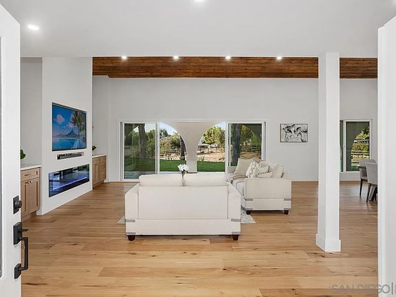 Honey, stop the horse! Welcome to this newly renovated equestrian estate in the highly coveted Saratoga Estates gated community in Bonsall, CA. This exclusive neighborhood offers miles of equestrian trails directly accessible from this property, making it a paradise for horse lovers. Set on 2.7 acres, this property is equipped with a giant horse pasture, two-stall barn, multiple turn-outs, wash rack, amazing arena potential to make your own, and horse pen and additional animal facilities. A versatile 1,000-square-foot building can serve as a workshop, gym, or even an ADU. The scenic outdoor entertainment area includes an island and outdoor kitchen, leading to a large covered patio where you can relax and watch your horses graze. Inside, the home boasts a bright and airy open floor plan with soaring 14-foot vaulted ceilings. The primary suite is a retreat in itself, with a spacious bedroom and luxurious en-suite bathroom. The den can be transformed into an additional bedroom or used as a cozy wine and game room. High-end finishes include real hardwood flooring, oak cabinetry, and top-grade stainless steel appliances, blending style with functionality. Don’t miss this rare opportunity to own a stunning equestrian property in one of Bonsall’s most sought-after communities. This estate is a dream come true for horse enthusiasts and anyone seeking the perfect blend of rural charm and modern elegance.