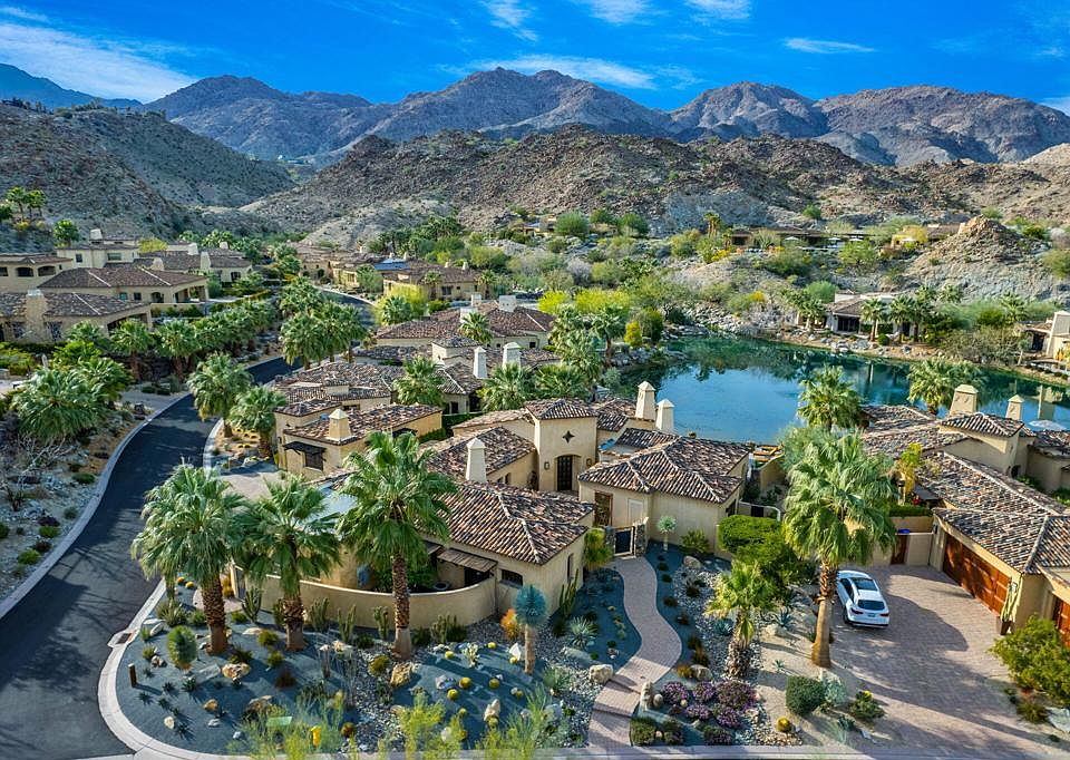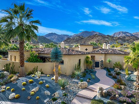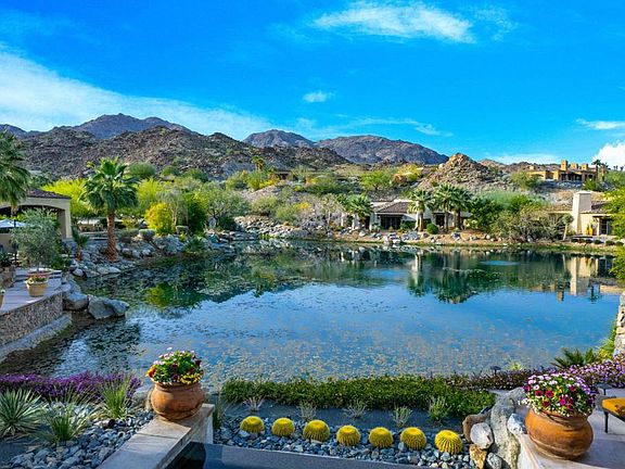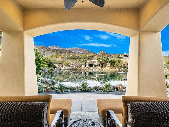 Welcome to this luxurious oasis property nestled within the prestigious Stone Eagle community. As you approach the property, a meticulously landscaped exterior welcomes you. Sitting on an oversized corner lot, this home features 4 bedrooms and 5 bathrooms, including 2 detached casitas providing a ''resort-style'' living experience out of your own home. Just off the patio a surreal backdrop, with a private lake, and breathtaking mountain views creates an inviting atmosphere for both daytime relaxation and evening gatherings. A cozy family room invites you to unwind and enjoy quality time with loved ones while flowing effortlessly into the gourmet kitchen, equipped with top-of-the-line appliances, and beautiful marble countertops that extend up through the backsplash. The main bedroom suite is a true sanctuary, offering breathtaking views of the surrounding mountains and a beautiful fireplace for those cooler nights. This retreat includes a generously sized closet, a luxurious tub, two vanities, as well as a spacious shower, ensuring a spa-like experience. This home is perfectly located close to the best restaurants and shops the Desert has to offer. This home is the epitome of luxury Palm Desert living.