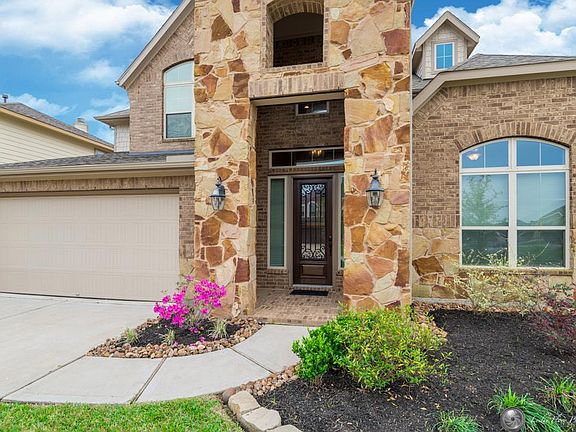 Beautiful, Lennar ''Grafton Plan''. Grand entry w/2 Story Foyer, 4 bedrooms, 3.5 baths, study, media & game room. Open concept kitchen w/tumbled stone backsplash, granite & stainless appliances. Upgraded tile floors throughout downstairs living areas. First floor features Master suite w/lots of natural light & spa like bath plus additional guest room w private bath. Crown Moulding, Tankless Hot Water, 8 HD 720p Nightvision cameras w/batttery backup & full sprinklers. Covered patio to enjoy!