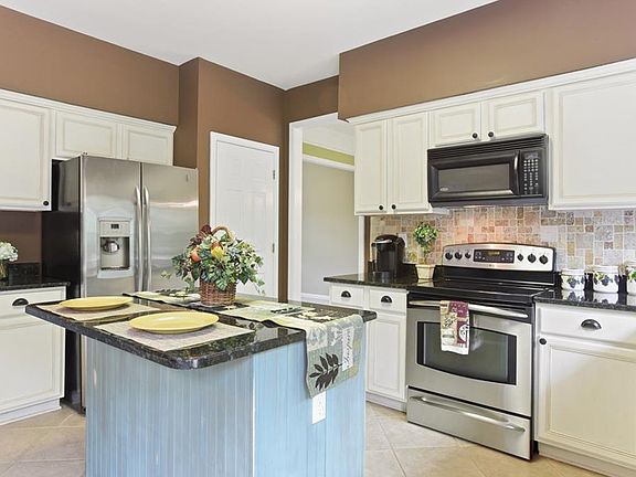 - Kitchen Features: Island, Breakfast Area, Cabinets Stain, Pantry, View To Fmly Rm, Counter Top - Solid Surface
