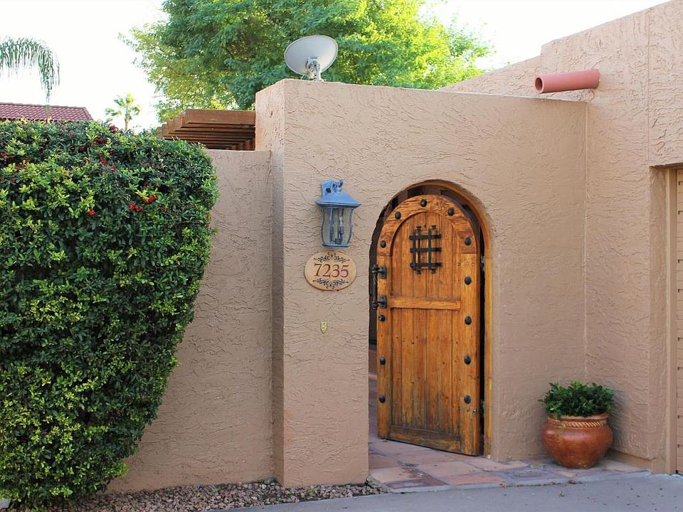 ONE LEVEL, SINGLE FAMILY DETACHED SPANISH STYLE HOME, 4 BEDROOMS. VERY SERENE PRIVATE RETREAT, SPACIOUS COURTYARD AND HEATED POOL. LIVING SPACE EXTENDS TO THE COURTYARD WITH AN EXPANSE OF FRENCH DOORS. EACH SECONDARY BEDROOM HAS FRENCH DOORS TO THE COURTYARD. GREAT ROOM LIVING SPACE WITH BEAMED CEILING. MASTER BEDROOM HAS A HUGE CLOSET AND ROLL IN SHOWER. LOCATED IN McCORMICK RANCH WITH WALKING AND BIKING PATHS THROUGHOUT. TOP LOCATION, CLOSE TO ALL OF SCOTTSDALE''S SHOPPING, HEALTH CLUBS, RESTAURANTS, GOLF AND ENTERTAINMENT. SANTO TOMAS IS A LEASEHOLD COMMUNITY; LAND RENT IS 1/10TH OF 1% OF PURCHASE PRICE PER MONTH. SIGNED TENANT LEASE; FEB 1-APR 30. $14,400 (PRO-RATED AFTER FEB 1) RENTAL INCOME TO YOU, THE NEW LANDLORD.