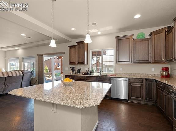 Beautiful Home Located In Desirable Banning Lewis Ranch~This One Is LOADED With Upgrades~The Adorable Front Porch Welcomes You Home The Minute You Walk Up To The Front Door~Elegant Engineered Wood Flooring Flows From Room To Room On The Main Level~Formal Dining Room Also Makes A Great Place For An Office~Bright And Sunny Living Room Has Lots Of Room For Everyone To Gather Around The Fire On A Cool Colorado Evening~The Kitchen Is A Chefs Delight With Center Island, Stainless Steel Appliances Including Gas Range, Dishwasher, French Door Refrigerator And Microwave~Designer Cabinets With Pull Outs In The Lowers, Granite Counters And Pantry Complete The Kitchen~Hard To Find, 4 Generous Sized Bedrooms On The Upper Level Give Everyone Their Own Personal Space~Master Suite Has Tray Ceiling, Attached 5 Piece Bath And HUGE Walk In Closet~Loft Area Is The Perfect Spot To Hang Out At The End Of A Long Day~Relax And Unwind On Your Back Patio Complete With A Pergola To Give You A Little Shade~Upgrades And Extras Include: All Kitchen Appliances, Composite Deck, Pergola, Hunter Douglas Shades In Living Room And Master Bedroom, Vivint Security Equipment And Smart Smoke Detectors, Vinyl Siding,Surround Sound Prewire In Living Room, WiFi Controlled Garage Door Opener, Granite Counters, Central Air, Fenced Yard, Tons Of Storage And More~Short Commute To Military Bases~Easy Access To Shopping And Entertainment~Community Pool, Rec Center, And More~