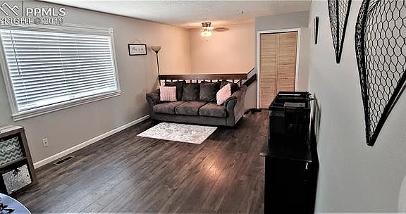 Come view this newly updated home in Fountain, minutes from Fort Carson, Peterson AFB & Schriever AFB. You will love all the features of this home including Engineered flooring, Ceramic tile baths, Brand New Central AC and much more. The house is located on private lot with well established trees giving it a very park like feel. They have all new Double Pane Vinyl Windows with custom surrounds.The Living room space on the main has all new hardwood flooring, ceiling fans, new baseboards. The dining room and kitchen are conveniently right off the living room with this floor plan.The Kitchen and dining area has wood floors and a walkout to the Covered over-sized deck. It's a beautiful area for grilling and eating out on the cool Colorado evenings. The kitchen has beautiful newer real hardwood cabinetry and the black appliances include oven/range, dishwasher, microwave and refrigerator. Don't miss the cute desk area and extra storage off of the dining area. Very convenient for cooking dinner and managing tasks. The Master bedroom is just off of the fully remodeled bath with decorative ceramic tile, new vanity, fixtures and lighting. The fully finished basement space with over sized Family room theater area is a gem and there is another spacious bedroom and remodeled bath with plenty of space and privacy for guests. Don't miss the highly coveted 2 car garage in this Widefield area. This beauty won't last, so come make this house your home today.