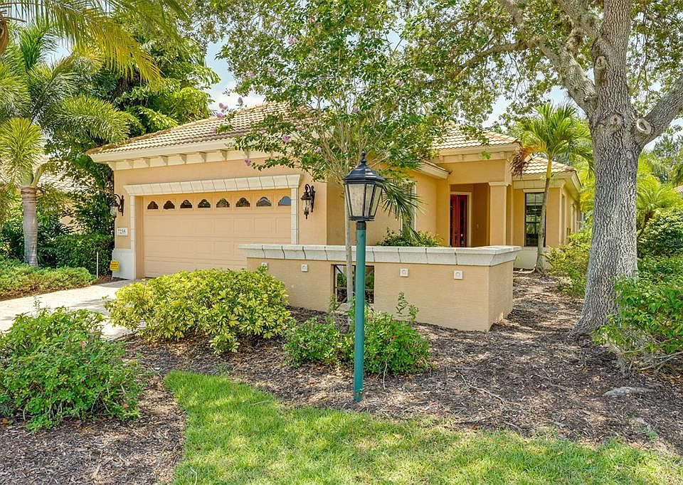 Welcome home to your private Oasis! This flawlessly maintained and magnificently situated single family pool residence in the highly sought-after Lakewood Ranch Country Club is the one you have been waiting for! A former Neal model showcases all Neal’s finest features. Upon entering, you will be taken in by the sunny, bright, just freshly painted neutral palate and airy ambiance from the high ceilings, crown molding, fabulous architectural details, beautiful arched details, and light-filled picture windows, accentuating the pristine and quiet location. The formal living room and dining room are great for entertaining, while the open floor plan makes it feel distinctly modern. This two-bedroom, two-bathroom home also includes an office that can be converted into a third bedroom if desired. The spacious gourmet kitchen features granite countertops, stainless steel appliances, accent lightening, gas cooktop, and bar seating. The breakfast nook features beautiful windows to allow natural lighting and is the perfect touch to complete the feel of your gourmet chef’s kitchen. The owner’s suite offers tray ceiling, large bay windows for natural lighting, double separate vanities, large walk-in frameless shower, a sizeable closet with designer-built-ins, great for easy organization. Having guests over? No problem! This house has everything needed to be the best host possible with its spilt plan layout giving your guest their privacy while still being part of all the laughter and stories that friends and family share. Enjoy outside entertainment or just a relaxing day by your private pool on your extended paver lanai area featuring a pool with water features for added ambience and outdoor grill area. Meticulously-manicured landscaping with mature trees adds to the warmth and serenity of this elegant home. This wonderful maintenance-free home is steps away from the community pool, entertainment room and grill and minutes away from Waterside Place, shops, fine dining, and Main Street Lakewood Ranch. A short drive to Sarasota's finest white quartz beaches, downtown Sarasota, and UTC mall. It is also conveniently located near St. Pete, and Tampa. For those with discerning taste who desire a Florida lifestyle, look no further than this prestigious Lakewood Ranch Country Club home