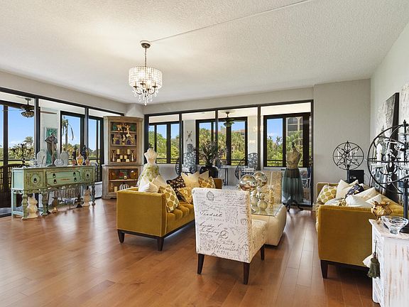 This recently updated 3BR, 2 1/2 bath, corner is extra special in so many ways. All exterior windows/sliders just replaced with Impact Glass at a cost of $55,000. Beautifully & lovingly customized this residence has a Grand Foyer, real wood floors in the expansive living/dining area, new custom bathrooms with frameless shower doors, sparkling new Island Kitchen with designer flooring and restaurant inspired GE Cafe Series appliances includes a cooktop and 2 wall ovens. Architecturally augmented bonus room, perfect for convertible office, small studio, nursey or?? The Fully Enclosed 510 SF wrap-around terrace with tranquil golf course view has new flooring & ceiling fans. Only the 2nd floor residences have a 300 SF open terrace. TWO garage parking spaces and one storage bin are included.