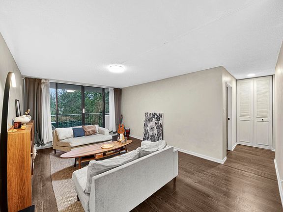Bright and inviting 2-bedroom SW CORNER unit offering nearly 1,000 sqft of living space in the heart of Highgate. This well-designed unit features a spacious living area opening onto a balcony facing peaceful mature trees. The functional kitchen provides lots of cabinets & flows seamlessly into a very spacious dining room, ideal for family meals. 2 generously sized Bedrooms are thoughtfully separated for maximum privacy, with the master easily accommodating a king-size bed. In-suite laundry, secure parking and storage, and a quiet corner position add to everyday comfort. Located just steps to Edmonds Community Centre, Highgate Village, schools, parks, and transit, this home delivers unbeatable convenience for young families and downsizers alike.
