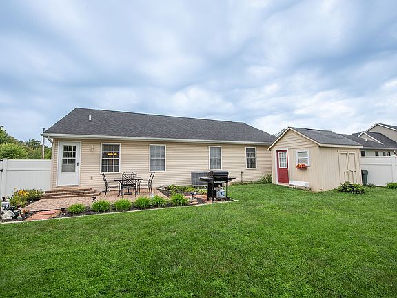 Welcome home to this wonderfully well maintained 3 bedrm, 2 bath ranch You can see just how much care was put into this home from well-manicured lawn to blemish free interior & tastefully remodeled bathrooms Open concept floor plan hardwood flooring & move-in ready condition Bright & inviting kitchen includes all appliances breakfast bar & access to fenced backyard Begin & end your day in your own spacious ensuite complete w/walk-in closet & renovated bath w/walk-in shower Laundry/mudroom offers loads of extra storage space & is located just off of 2 car attached garage Outdoor includes an oasis of its own w/brick patio privacy fence shed & lovely mature shade tree This home is a gem don't miss out on this opportunity