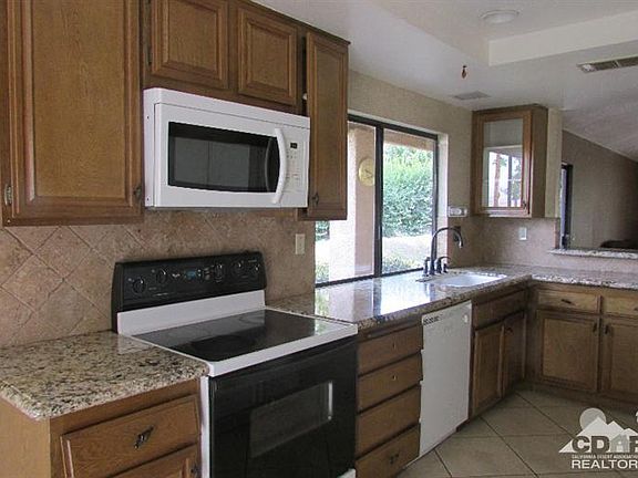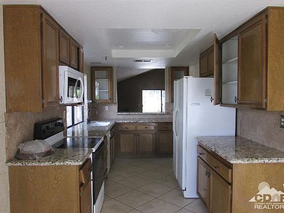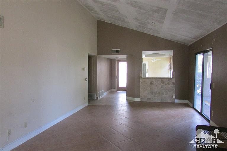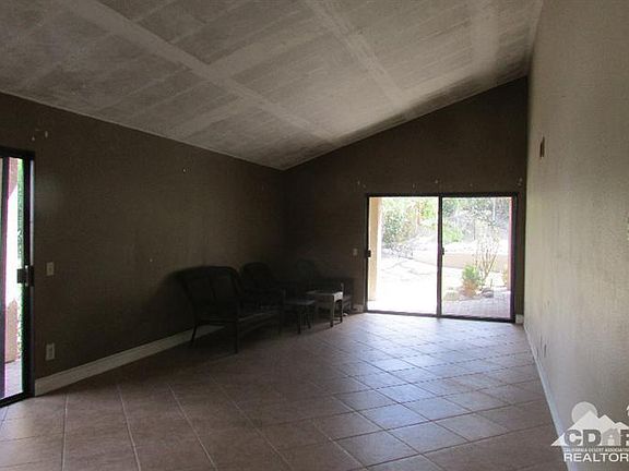 This is a light and bright single level end unit. All tile floors except for the bedrooms. Slab granite in the kitchen. The kitchen is open to the living room, and has a dining nook. Home features vaulted ceilings in the living room and master bedroom. There is a private patio off the dine area as well as living room/master bedroom. Features a 2 car attached garage. Located close to the community pool/spa and tennis courts. This property is located in the desirable Desert Sands Unified School District. Close to El Paseo for shopping and restaurants. This home is currently being rehabbed so please look past the mess. Owner has removed the popcorn and will be texturing the ceilings. Paint will be fresh. Please submit an offer prior to completion if you want to pick your designer colors....or do your own renovation.