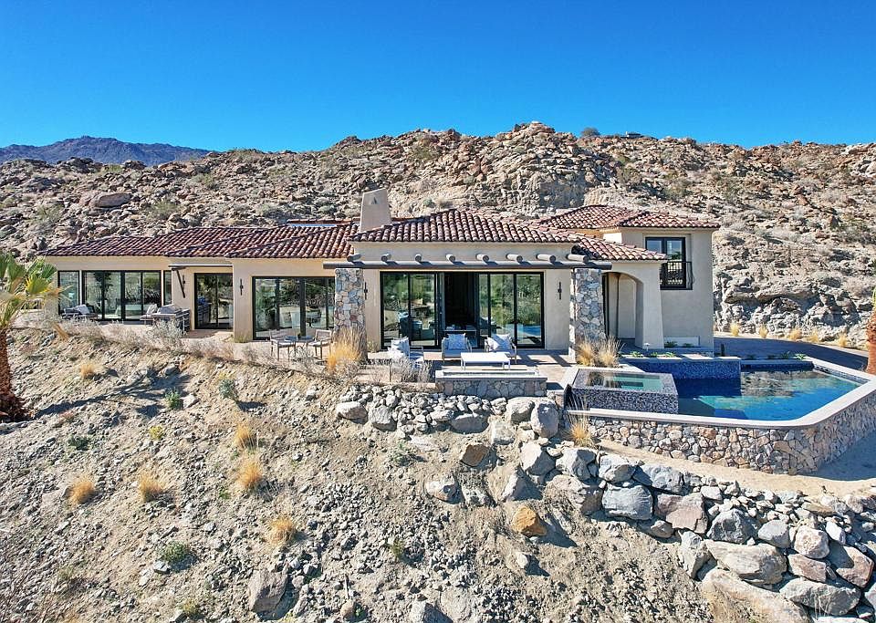Spectacular Brand New Custom Contemporary home with the Most Dramatic 180 Degree Down Valley and Mountain Views in the Desert! Located within the private community of Stone Eagle Golf Club, this remarkable residence of uncompromising quality, offers an open great room design, 4 bedrooms, 4.5 baths, and 3.650 square feet of sophisticated style at every turn. The impressive gourmet kitchen, living and dining areas include sleek Italian honed porcelain floors, modern fireplace, the finest appliances and quartz countertops. A floor to ceiling all glass climate controlled built-in wine cabinet is one of many dramatic features in this amazing home. The master suite includes a luxury spa bath with private outdoor and shower plus 2 additional guest suites are on the home's main level. Upstairs is an ideal private 4th bedroom guest casita with its own refreshment bar. The backyard patios offer commanding views providing the ideal retreat to relax or entertain family and friends next to the pool, and spa with two cozy firepits.