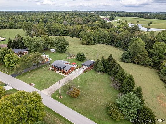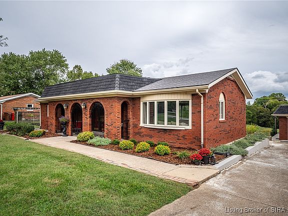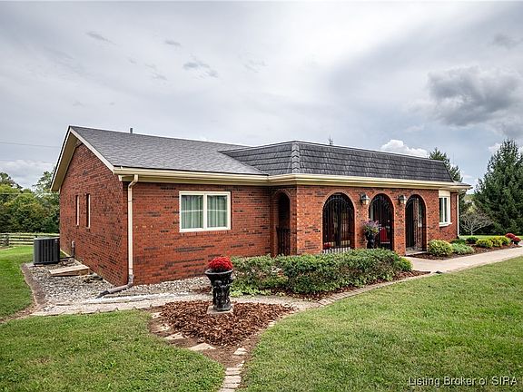 Welcome home to this unique and charming RARE find in the heart of Floyds Knobs. This home has never been on the market and has been loved and well cared for by the same family since being built. The character inside and outside of this home is truly works of art. From the architectural beauty of the covered portico featuring arched brick columns and heavy custom wrought iron fencing and gates to the matching arched columns inside of the home, you will fall in love with all of the beautiful character in this home. The interior of this ranch home features 3 bedrooms, 2 bathrooms, an eat-in kitchen, living room, family room and laundry. The property sits on nearly one acre of land and includes beautiful mature tree's, lovely flower and landscaped gardens, and has an amazing patio that overlooks a scenic and expansive pasture. The property also has a detached 2-car garage that is connected to several workshop areas providing tons of extras storage, a utility garage area for mowing equipment, and an art studio area that could be used as an office or whatever you can imagine it being used for. This home is move-in ready as all appliances stay including the washer and dryer. If you are looking for a vintage charm beauty......look no further. Call your favorite Realtor today to schedule a showing. Sq ft & rm sz approx.