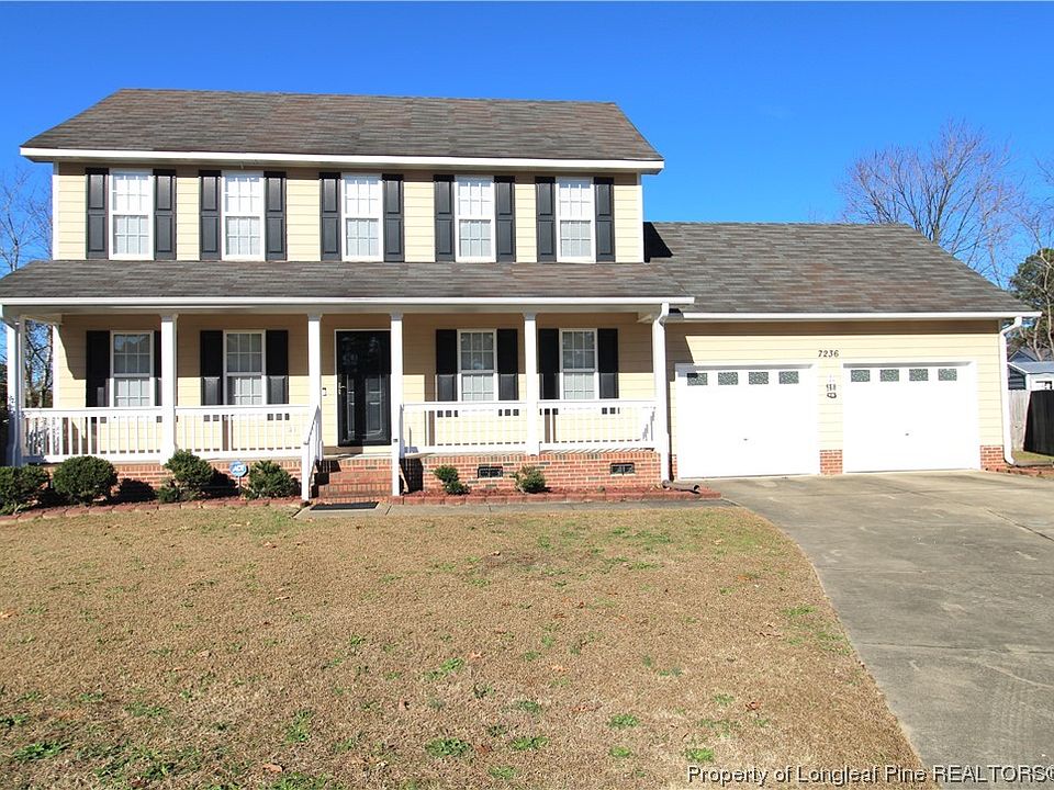 This gorgeous features 2 Story home has 3 bedrooms upstairs, 2 1/2 baths. Spacious Kitchen with Backsplash, breakfast area. Cozy Fireplace, Large Great Room Area, Formal Dining, Spacious Bedrooms Upstairs, Master Suite with private Bath, Garden Tub, Walking Closet and Dual Vanity an oasis of peace and relaxation. Large Front Porch will make you look forward to enjoying a nice afternoon cup of coffee. Double Oversized Car Garage. Luxury Vinyl Plank Beautiful floors throughout the house Enormous backyard perfect for entertaining, Shed for extra storage. Ideal location: Jack Britt School District, and Ft Liberty.