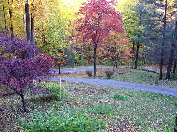 Enjoy year round view, stream, waterfall & cool summers while sitting on large deck or covered porch.Furnished home, new roof, gas log or electric heat, 3300 ft elevation. Wildlife and fruit trees on over an acre. Private setting with paved drive located on scenic by-way only 2 miles from hiking trails. No problem getting in or out in winter with snowfall. Lots of dry storage or Workshop area. Very peaceful and serene and perfect to escape the hustle & bustle.