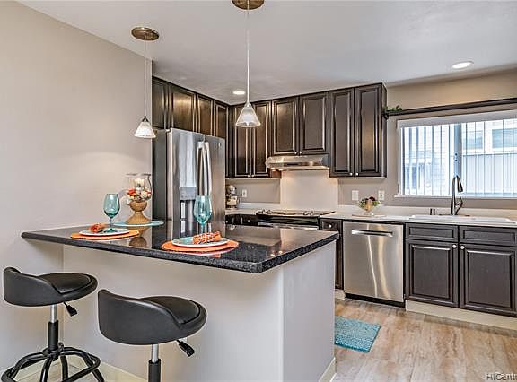 Welcome home to KALUANUI, Hawaii Kai's hidden gem! This rarely available, 2 bedroom 2 bathroom, end-unit islike a single family home and shows pride of ownership! Includes a full 2 car garage and an 11-panel photovoltaic system(owned, not leased) with Net Energy Metering (NEM). Stainless steel appliances and recently upgraded bathrooms.Just minutes to shopping, dining, and entertainment. Building is VA Approved.