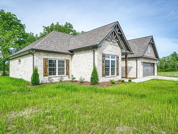Sophisticated new construction from B4 Construction with a sprawling 1-level floor plan! Beautiful brick and wood accent construction features a great room with gas fireplace, an office, a huge primary suite with tile shower, elegant kitchen with gas Zline range and large island, and rounded off with a large covered back patio overlooked the tree-lined backyard. Convenient to Cookeville, Baxter, and I-40 tucked near the end of the street of a new neighborhood!