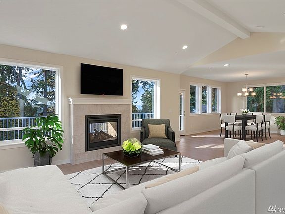 Main floor living. New construction at end of secluded new road. Spacious kitchen & dining room with peaks of Puget Sound. Large deck with two way Fireplace. Master Bedroom on main floor with large walk-in shower and own laundry room. 3 bedrooms down with 4th bedroom/Den/Bonus room and a additioanal laundry room. Low maintenance yard. Vaulted ceiling Living room with two way fireplace.