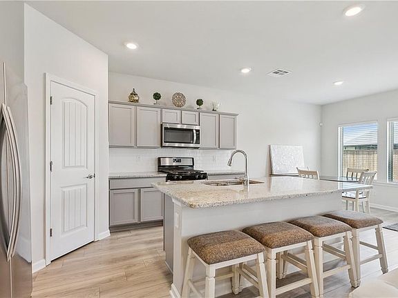 LIKE NEW Lakeshore Villages home w/open floor plan with resort style living. The Bellvue is a fabulous 3 bedroom, 2 bath home. Two The kitchen island opens into the living and dining areas with natural light spilling in from the windows from the patio. The kitchen features stainless appliance package including gas range, and a corner pantry. Master bath has double vanities and separate master shower with garden soaking tub to relax away the day, and the master closet is a generous size. Luxury vinyl plank floors are in all main living areas and the master bedroom. 9ft ceilings throughout this home. Post-tension slab with 10-year structural warranty and Smart Home automation included Wi-Fi thermostat, Wi-Fi enabled deadbolt lock, garage door opener, doorbell camera, and Alexa Dot for voice control - or you can control from your smart phone.