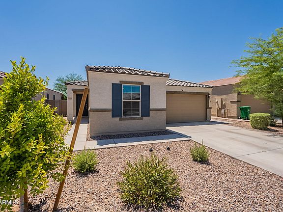 Welcome to this beautifully maintained 3-bedroom plus office home in Marbella Ranch—just minutes from Luke Air Force Base and State Farm Stadium! The versatile office easily converts to a 4th bedroom, offering flexible space for guests or growing needs. You'll love the open-concept kitchen with sleek granite countertops, 42-inch cabinets, pantry and a generous island perfect for entertaining. The home features tile throughout, a split floor plan, smart thermostat, and a newer hot water heater. Step outside to your fully finished backyard oasis with turf, pavers, a pergola, and private hot tub—ideal for relaxing or hosting. With plenty of storage and thoughtful upgrades throughout, this move-in ready home checks every box! Ask about VA Assumable loan at 2.25%.