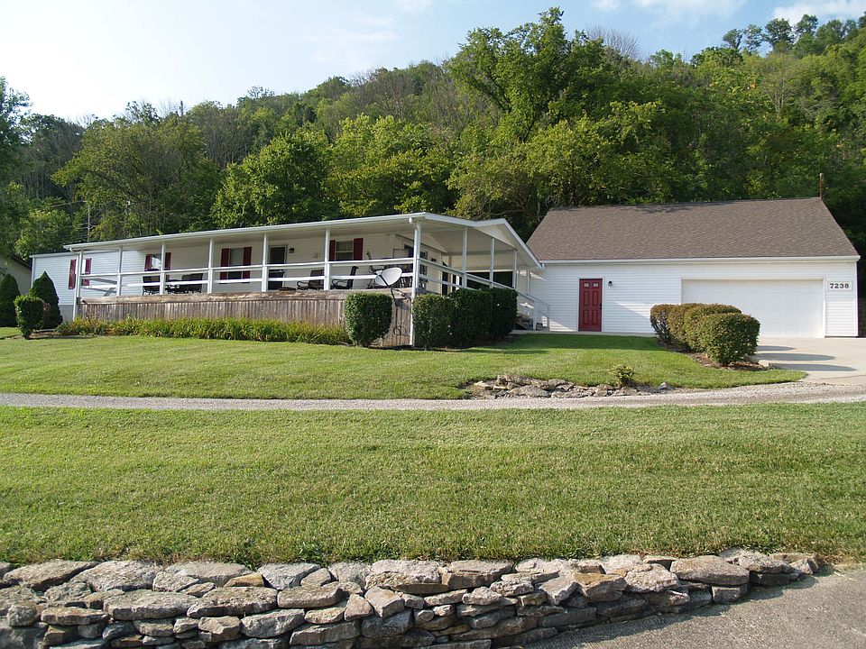 Come see this beautiful home with a covered deck in Ripley Ohio, overlooking the Ohio River with a private concrete boat ramp and private composite boat dock. The boat ramp is NOT a shared community ramp. Enjoy the ease of launching your boat any time you want without waiting in line. The house and barn sit on a 1.23 acre lot and this property is NOT in the flood plain, so flood insurance is not required. The house has two bedrooms and two full baths and was completely remodeled, including cabinets, countertops, interior doors, trim, light fixtures, faucets, flooring, etc. The shingles were replaced in 2011. The refrigerator, stove, washer and dryer will remain. There is a propane fireplace in the living room. The barn was substantially rebuilt in 2011 with new shingles and siding. A third 10' x 18' bedroom was added in the loft of the barn. There is enough room for up to a 38' boat, full size truck, golf cart, and jet skis. The barn also has a shop and storage area in the middle. The boat docks are made with Trex composite decking on pressure treated lumber, supported by Permafloat float drums. The trailer behind the house is used to remove the docks in the winter and is included with the house. The docks and trailer fit in the barn for winter storage.
