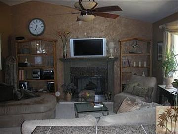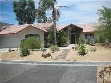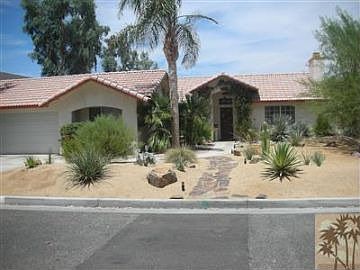 Wonderful home in Palm Desert close to shopping and entertainment. Minutes from College of the Desert. Cul-de-sac location. Light, bright, and open. Desert landscaping front and rear. Granite counters in kitchen. Faux finishes in bathrooms and living room. Venetian plaster and slate floor in one of the bedrooms. New air conditioner. Swamp cooler in master bed. Automatic awning over rear patio. Fireplace in living room. On city sewer. Home is in move-in condition and is extremely charming.