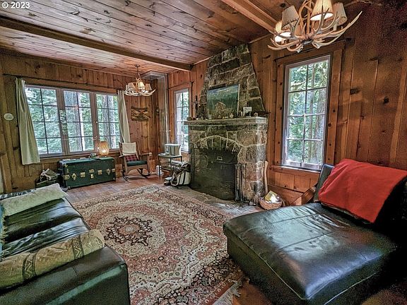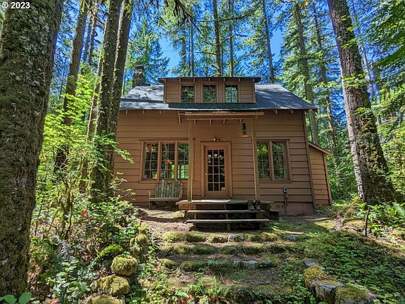 Step back in time to this 1930's original classic cabin. Stunning stone fireplace highlights the living room. High ceilings and original wood walls, wood floors and paned windows. Hard to find original style. The cabin features a roomy upstairs with two private bedrooms and sleeping loft. The kitchen even has a gas stove for cooking! Updated bathroom with tub. Indow thermal window inserts. Bonus storage room attached to the cabin. This location is across the street from the Zig Zag River and it's located right in Rhododendron for quick access to ski and snowboard slopes only 15 minutes away. It's the perfect spot for winter skiers who don't want to sit in traffic for hours on the weekends. Mountain bikers will love the trails coming down from Government Camp. If you need a grocery store or restaurants they are in walkable distance. And, you can walk to the Skyway for live music on the weekends! This is a gateway location to all Mt. Hood activities with the convenience of a classic cabin that's only an hour from Mt. Hood. It's on leased land so there's no airbnbs or full time living at this spot. This gem won't last long because it's one of a kind!