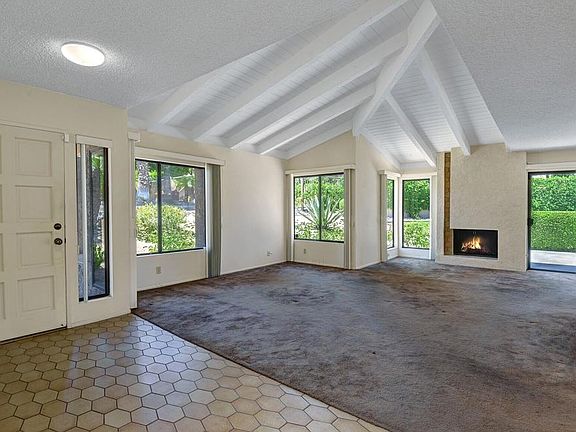 $46k Price Improvement! Great potential in this 1,648 sqft 3 BR, 2 BA unit in sought-after Indian Hills community in South Palm Desert. Rarely do you see these in-demand end units with 2 car garage with direct access come available. This open floorplan provides a plethora of natural light and has a nice flow for entertaining. Great room with stately fireplace, high wood beam ceilings open to dining area and centered wet bar. Kitchen features Corian countertops, refaced cabinets and tile flooring. Enclosed Atrium with sizeable skylights and many possibilities. Main Bedroom with double closets and dual vanities. Newer HVAC. Indian Hills amenities include 6 pools, 2 tennis courts, and pickle ball. Convenient location just minutes away from hiking, biking trails and upscale shopping and dining on El Paseo.