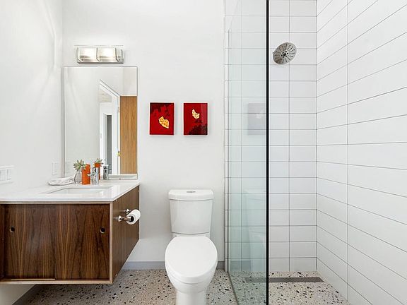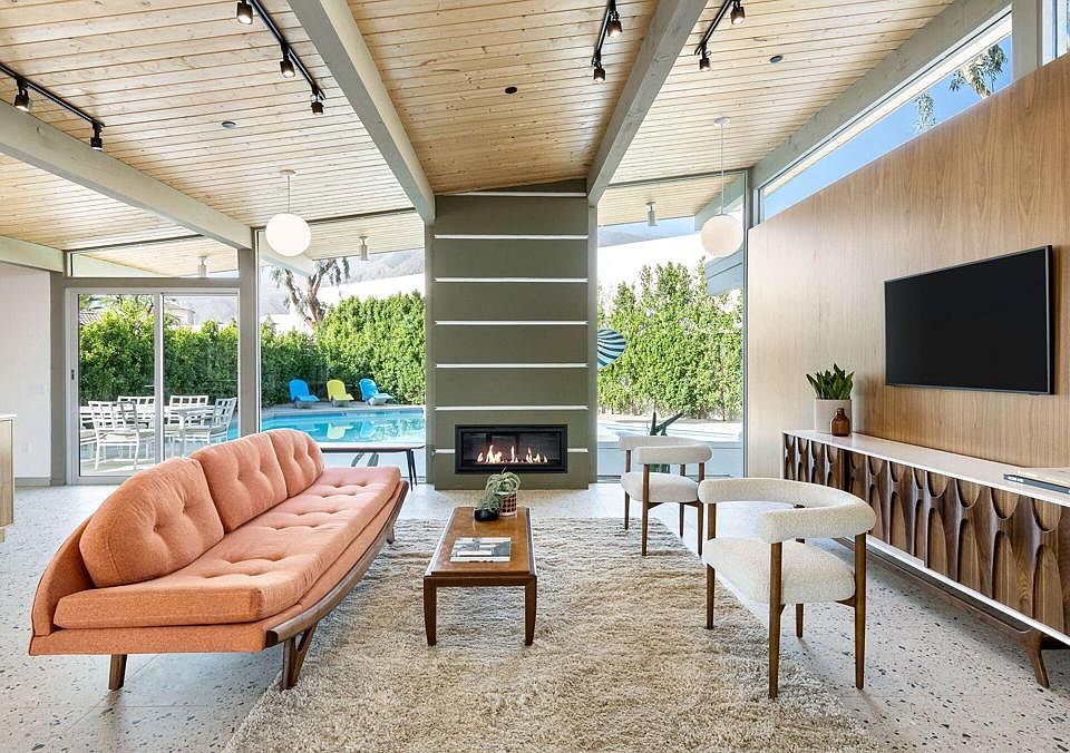 The first Desert Eichler in Palm Desert and the first SV-54 Claude Oakland design to be rebuilt in the Desert. Newly constructed home, 2023 build, is a one of a kind Desert Eichler, licensed and based off original plans from the 1960's. Finishes offer tongue and Groove ceilings, Kerf walnut europly cabinetry, recessed aluminum base, and baked Italian terrazzo tile flooring. The floor plan offers four en suites, vaulted ceilings with clerestory windows, indoor-outdoor living spaces with walls of glass offering views and seamless outdoor connection and a private atrium. Geometric pool design fits the lot perfectly while offering complete privacy with no neighbors. All of these warm ideal Southern California living aspects of mid century architecture collide with today's technology, efficiency, and luxuries. High end appliances, quartz countertops, SEER 22 ductless air conditioning system with individual control capabilities, Fleetwood sliding doors, and open living spaces. Want a mid century house without all the problems? This home is brand new and offers energy efficiency. Be a part of history today, Desert Eichler_10. Offered turnkey furnished! Call to schedule your private showing today!