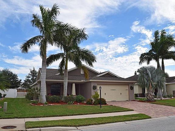 You will be amazed at the high end finishings in this Craftsman Style, energy efficient home. (see attached electric bill for past 12 mos!) The curb appeal itself is stunning between the pavered driveway and carriage style garage door, obelisk pillars framing the covered front porch. This Rhinehart built home abounds with touches normally reserved for much higher price points, and is offered with a 2-10 Home Warranty. The solid wood cabinetry in the kitchen, baths, and laundry room, is simply beautiful. The stainless steel appliances contrast the ceramic tile and nickel pulls perfectly. Plenty of storage with the oversized pantry near the kitchen table. The great room is situated beyond the open kitchen and more formal dining area. This split floor plan design makes good use of space for you and your guests. 2 bedrooms for the kiddos or your guests with guest bath to one side, and the master bedroom with master bath. Double vanities, walk in shower and walk in closet complement in this well appointed suite. The back yard is very private, fenced and has an extended open air pavered lanai, in addition to the 10x10 screened in lanai. This home looks brand new, truly a move in ready home, make it yours!